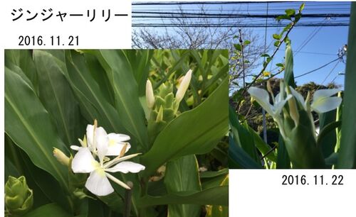 9月1日に咲き始めたジンジャーリリー. まだ咲いています!昨日(11月22日)は「小雪(しょうせつ):北国より雪の便りが聞かれる」だというのに. ただ,明日(11月23日)からは「暦通り」冷え込むという予報. あと二つ三つ残っているつぼみは心配.霜さ…