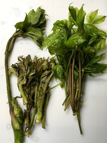 コシアブラ,そして,タラの芽,ヤマウドを購入しました. 左からヤマウド・タラの芽・コシアブラ. (どれも傷んで大幅値引きされたもので,あまり美しくないですね) その上,やや揚げすぎてしまいました---- テンプラ,美味しかったです. この中では,コ…