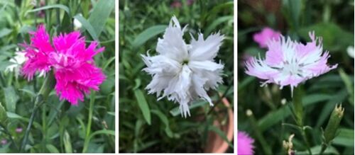 ナデシコは夏〜秋の花とされていますが,多くの園芸種は早ければ4月から咲き始めます. わが家でも今が盛り. 一つひとつの花は,私の大好きな撫子の花姿で美しいのですが--- iPhoneを引いて,ポット全体を写してみると荒れ地に生える花の様相. 種を乱雑に…