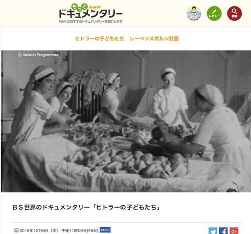 NHKBS13/06(木)放映「ヒトラーの子供たち」(Gedeon フランス 2017年). ナチスの施設“レーベンスボルン”(生命の泉)についてのドキュメンタリー番組です. NHKドキュメンタリー - BS世界のドキュメンタリー「ヒトラーの子どもたち」 レーベンスボルン…