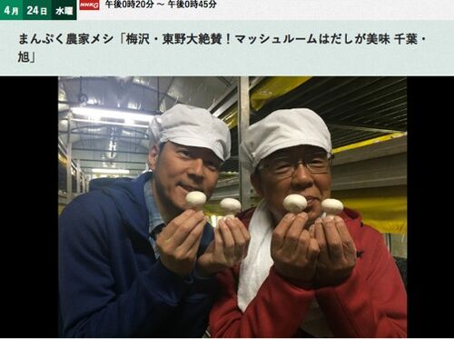 まんぷく農家メシ「梅沢・東野大絶賛!マッシュルームはだしが美味 千葉・旭」 梅沢富美男と東野幸治のまんぷく農家メシ! - NHK 【司会】東野幸治,梅沢富美男,【語り】鈴木奈々 4月24日水曜 NHK総合1 午後0時20分~ 午後0時45分 / 4月15日月曜 NHKB…