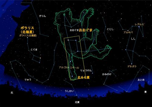 おおぐま座(大熊座、Ursa Major) この星座の名前は,ほとんどの方がご存じでしょう. 星座の一部,「北斗七星」は,更によく知られているに違いありません. 星座図鑑・おおぐま座 日本からは,一年中見ることが出来る(周極星と呼ばれる)ため,星座の季…