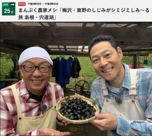 まんぷく農家メシ「梅沢・東野のしじみがシミジミしみ~る旅 島根・宍道湖」3 【司会】東野幸治,梅沢富美男,【語り】鈴木奈々 梅沢富美男と東野幸治のまんぷく農家メシ! - NHK 最後は 3軒目「元板前のしじみがしみじみしみ~る料理」です. 「こんにちは…