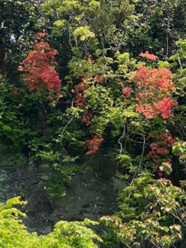朝食後,運動不足解消もかねて,鎌倉源氏山公園へ. ただし,今日は,買い物デー. 入口までと決めて. 登り口の前の崖を見上げると,見事なヤマツツジ. 昨年も同じ場所で出会った株. あの時は見事なフジがまわりを覆って圧巻でしたが---.探してみると---…