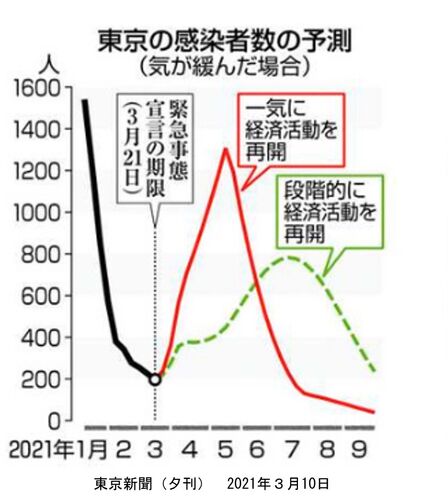 気の緩みで東京の感染者千人超も コロナ,5月再宣言の恐れ 東京新聞 2021年3月10日 09時42分 (共同通信) https://www.tokyo-np.co.jp/article/90629 首都圏の新型コロナウイルス緊急事態宣言が解除された後,市民の気が緩んで歓送迎会や花見などの宴会が…