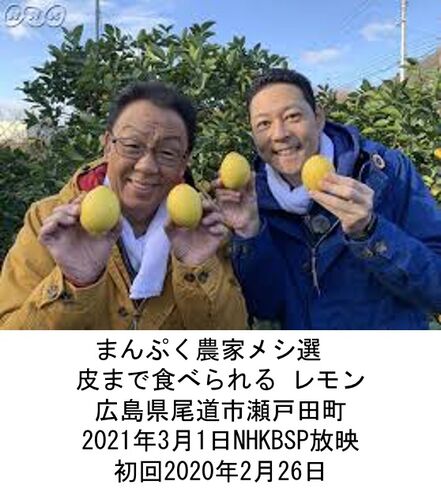 さあ,続いては 「味付けはこれで決まり!レモンで作る万能調味料」 2軒目は生口島のお隣,高根島にあります. 「こっちあがっていきますよ」「立派なおうちですよ」 「あらお母さん,お父さん」 迎えてくれたのは,レモン農家歴30年の仲田雄三さん,妻佳子…
