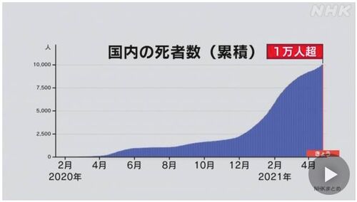 昨日のブログで 「新型コロナウイルスによる死亡者総数は,4月24日で9,890人. 現在1日の死亡者数は40名ほど. 二三日後には10,000人の大台を超えることになります」 と記したところ https://yachikusakusaki.hatenablog.com/entry/2021/04/25/235344 今日26…