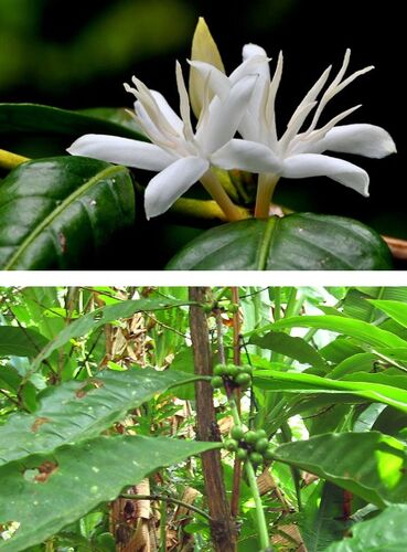 アカネ科の植物. ハクチョウゲ,ヤエムグラ,ヘクソカズラ,クチナシ,トコン(吐根),ペンタスとサンタンカに続いて,今日は---- コーヒーノキ(コーヒーの木). コーヒー豆(種)をとる木という意味で,このような和名がつけられていますが,やや不細工…