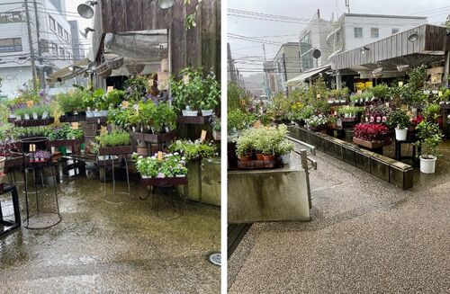 天気予報は台風.とはいえ,午前中,曇り空ながら雨がやんでいました. これ幸いとパン屋さんへ.途中のお花屋さんが楽しみの一つ. 秋の花たちは,落ち着いた感じがします. この店は高級店.いい花がそろっています.誰が買い求めるのか?という高値の花木…