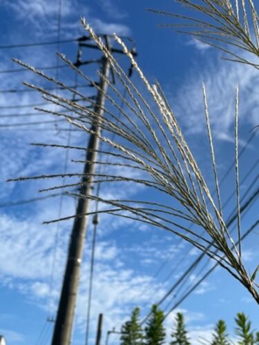 鎌倉駅近くの横須賀線線路脇に,植物に覆われた土手があります.通るたびに,何の花が咲いているかな,と探しながら歩きます. 今日,はじめに目に入ったのがススキの若い穂.この土手にススキはあまり多くないのですが. ヘクソカズラとヤブカラシはこの時…