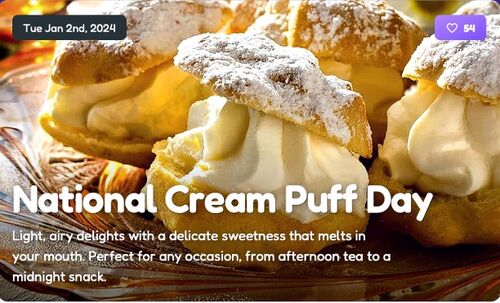 ウェブ・書籍を頼りにスイーツの歴史を調べるシリーズ2 シュークリーム2 シュークリームの現状/歴史 世界中で人気のシュークリーム. アメリカでは,「シュークリームの日(National Cream Puff Day)」があります.新年早々の1月2日! https://www.day…