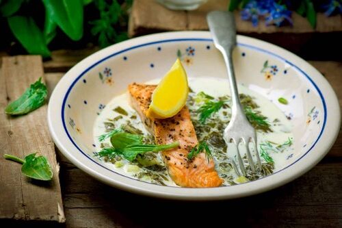 世界のシーフード14 サモン・ア・ロゼイユ/サーモンのソレルソースがけ Saumon à l'oseille(サーモン料理6) ームニエルとの比較ー サモン・ア・ロゼイユは,サーモンの切り身にロゼイユ(スイバ)を加え,クリーミーな魚のソースで仕上げたフランス料理.…